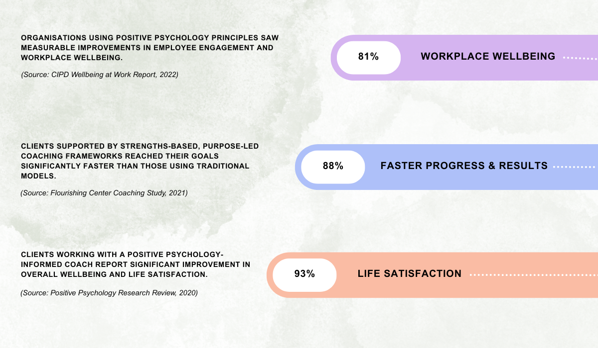 Backed by decades of research into human flourishing, wellbeing, and transformational coaching outcomes - being a positive psychology coach is relevant for all types of coaching and leadership.